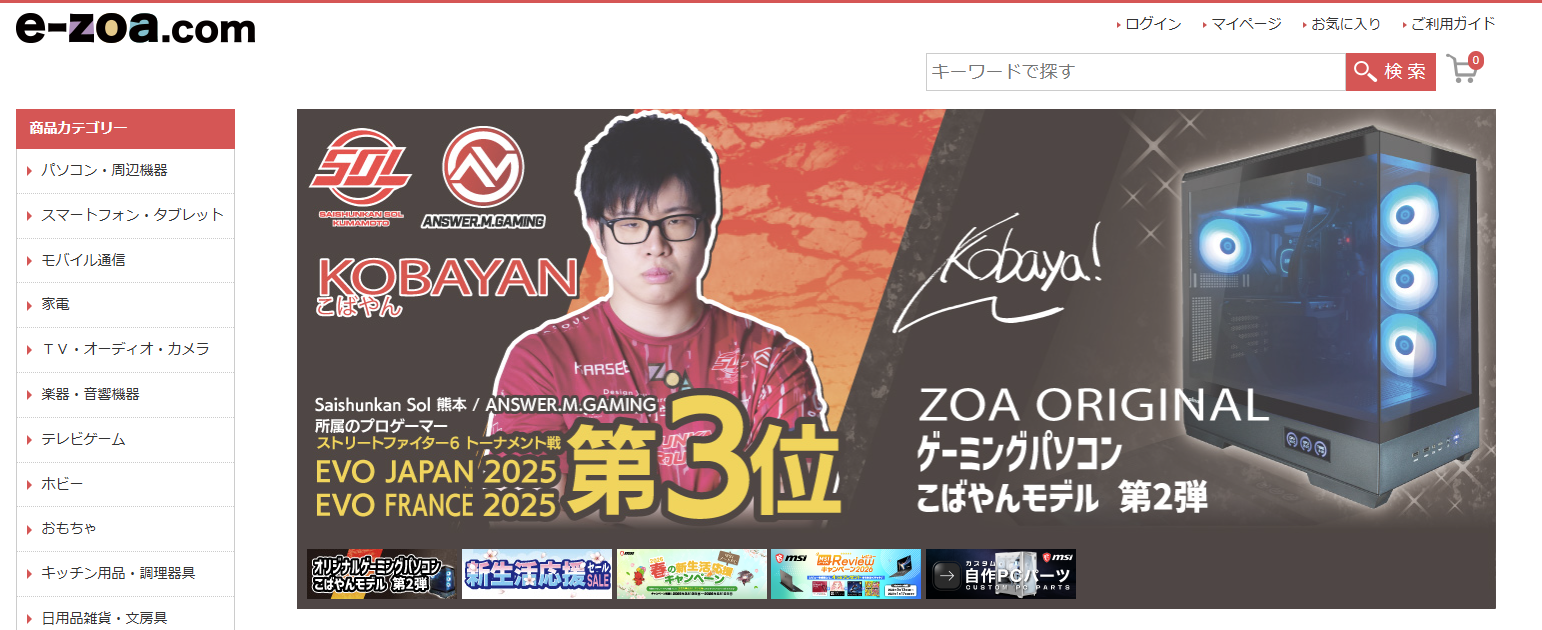 e-zoa.comは、パソコン・バイク用品・家電・ホビーといった幅広いジャンルの商品を取り扱う、利便性の高い総合通販サイトです。専門性の高い商品から日常使いのアイテムまでを一括で揃えることができるため、初心者から上級者まで幅広いユーザーに適しています。