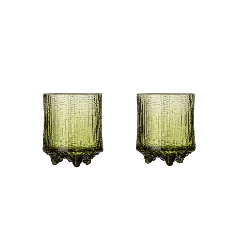 フィンランドの砂に多く含まれる鉄分をガラス原料として用いることで生まれた、奥行きのあるグリーンの色合い。そこには、豊かな自然への敬意と、フィンランドの風土を大切にする想いが込められています。
