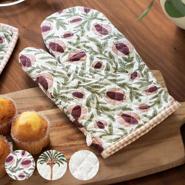 インド伝統のハンドブロックプリント技法で仕上げた、アジアンテイストのオーブンミトン。