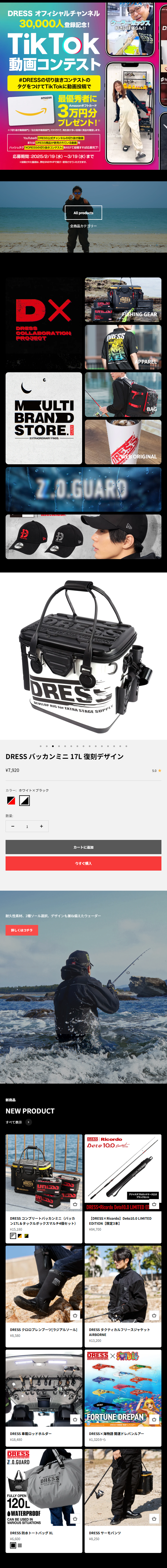 DRESSは、釣りやアウトドアに必要なアイテムを取り扱うブランドとして、多くのファンに支持されています。最大の特徴は、機能性とデザイン性を兼ね備えた製品ラインです。釣り具メーカーの中でも特にスタイリッシュなデザインが際立ち、初心者から上級者まで幅広い層に人気を集めています。